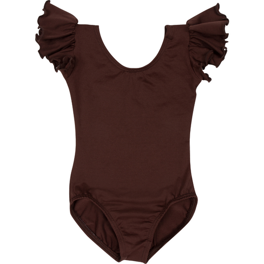 Brown Leotard with Flutter/Ruffle Short Sleeve for Toddler & Girls