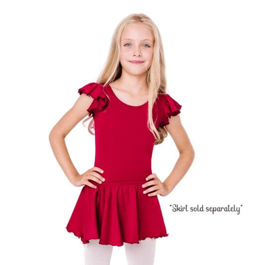 Burgundy Toddler & Girls Flutter/Ruffle Short Sleeve Leotard